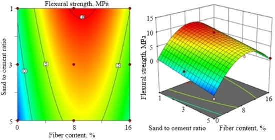 Figure 5. Flexural strength response surface at water to cement ratio of 0.55.