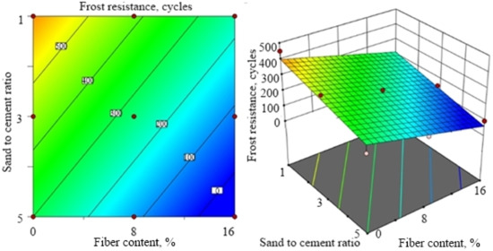 Figure 6. Frost resistance response surface at water to cement ratio of 0.55.
