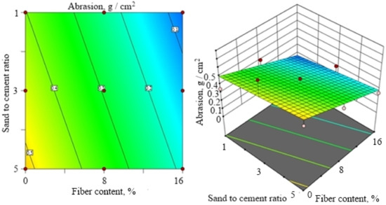 Figure 7. Abrasion response surface at water to cement ratio of 0.55.