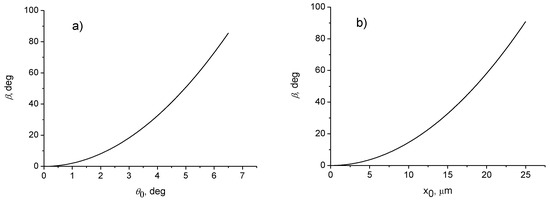 In Figure 1, the angular shift dependence on the beam’s angular aperture (diffraction angular divergence) for the distance corresponding to the period of the beam twisting is presented. The angular GH shift increases in proportion to the square of the angular aperture of the beam. A similar effect was experimentally observed for a wave beam when a Gaussian beam falls on the air–glass interface [51]. Substantial positive and negative Goos-Hänchen shifts near the surface plasmon resonance were also shown in subwavelength gratings [52].