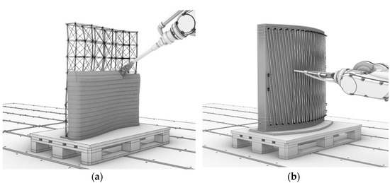 - Hack, N.; Dörfler, K.; Walzer, A.N.; Wangler, T.; Mata-Falcón, J.; Kumar, N.; Buchli, J.; Kaufmann, W.; Flatt, R.J.; Gramazio, F.; et al. Structural Stay-In-Place Formwork For Robotic In Situ Fabrication Of Non-Standard Concrete Structures: A Real Scale Architectural Demonstrator. Autom. Constr. 2020, 115, 103197. [Google Scholar] [CrossRef]