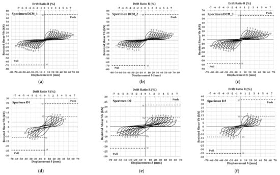 Figure 5a,b). In comparison, for the drift angle value R = 6.67%, specimen