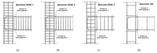 Monitoring of the steel strain value variations during the earthquake-type loading of the beam–column joint subassemblages was achieved using electrical resistant strain gauges, which were attached to the bars. The exact location of each strain gauge is presented in