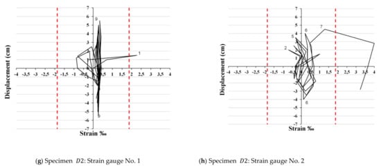 A comprehensive interpretation of the data acquired using the strain gauges requires careful observation and analysis of the damage evolution. It is also worth noting that the most crucial factor for the seismic performance of the beam–column joint region is the combination of the capacity design ratio value (