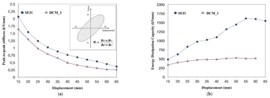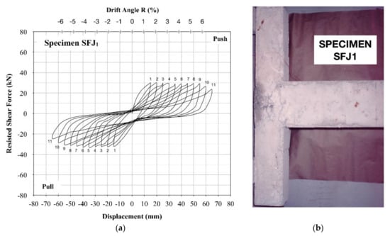 Figure 12a, respectively), it was clearly demonstrated that specimen SFJ1 achieved an indisputable superiority in the hysteresis behavior with respect to