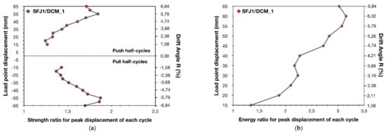 Figure 14b). For instance, during the earthquake-type loading, the energy dissipation ratio SFJ1/