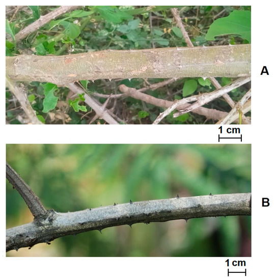 Acacia Caesia stems with bark. (A) Mature stem; (B) immature stem.