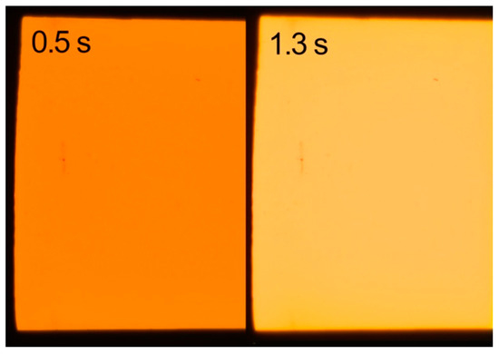 UV-induced visible fluorescence images of the same sample of Golden Orange with the only difference being the exposure time (0.5 s left; 1.3 s right).