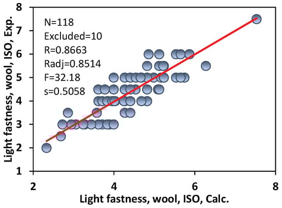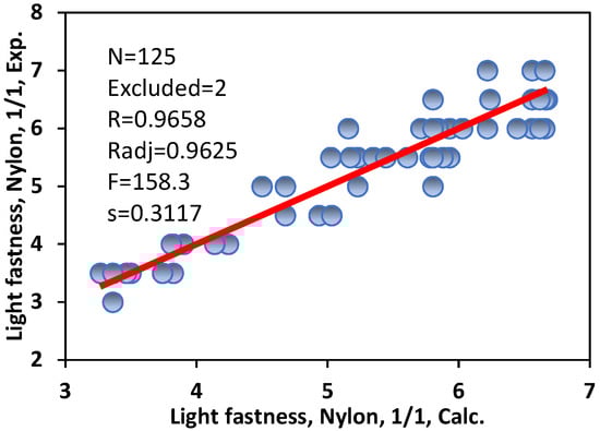 - Kats, M.D.; Krichevskii, G.E. Mathematical model for the relationship between lightfastness and chemical structure of monoazo disperse dyes. Izv. Vuzov. Techn. Text. Prom 1979, 60–63. [Google Scholar]