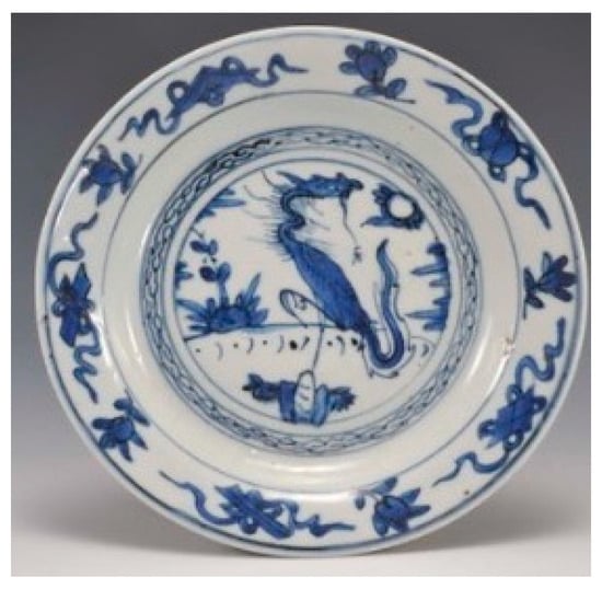 Frontal view of an intact dish with pattern of red phoenix flying toward the Sun, a representative artifact from the Wanli reign (1573–1620 CE) of the Ming dynasty (1365–1644) Reproduced with permission from [29]. Elsevier, 2018.