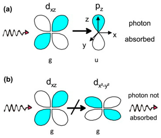 Laporte (a) allowed and (b) forbidden cross-orbital transition. Reproduced with permission from [3]. Elsevier, 2014.