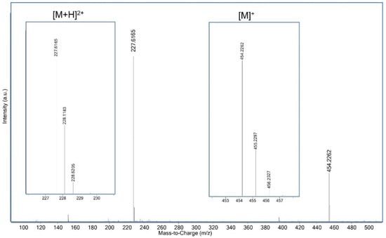 | b | C32H28N3+ | 454.2278 | 454.2262 | 6.38 | 2.2 × 108 | +++ | |