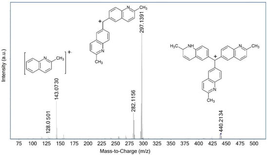 | c | C29H28N3+ | 418.2278 | 418.2265 | 4.97; 6.08; 7.48 | 9.5 × 107 | ++ | |
