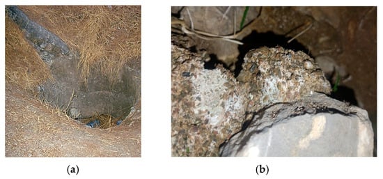 (a) A water cistern which was used to gather rain water for the purple dye workshop found within the archeological site Bisti, Hermione Greece. (A. Tsatsarou) (b) pieces of broken shells used as mortar in the Byzantine castles. (A. Tsatsarou).