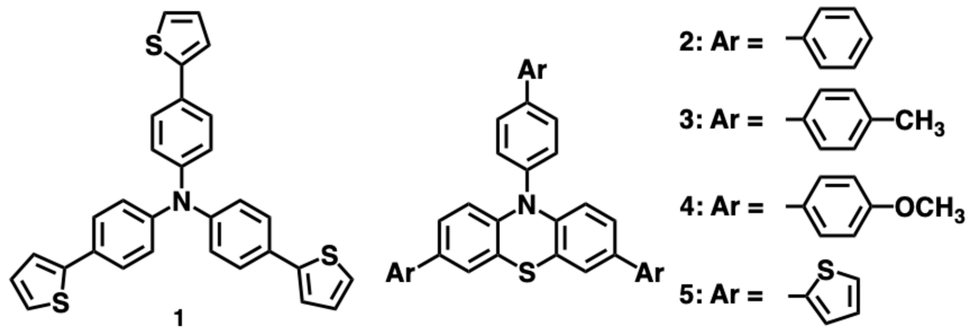 - Revoju, S.; Matuhina, A.; Canil, L.; Salonen, H.; Hiltunen, A.; Abate, A.; Vivo, P. Structure-induced optoelectronic properties of phenothiazine-based materials. J. Mater. Chem. C 2020, 8, 15486–15506. [Google Scholar] [CrossRef]