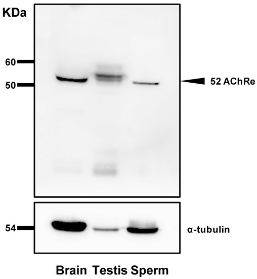 - Kumar, P.; Meizel, S. Nicotinic Acetylcholine Receptor Subunits and Associated Proteins in Human Sperm. J. Biol. Chem. 2005, 280, 25928–25935. [Google Scholar] [CrossRef] [PubMed]