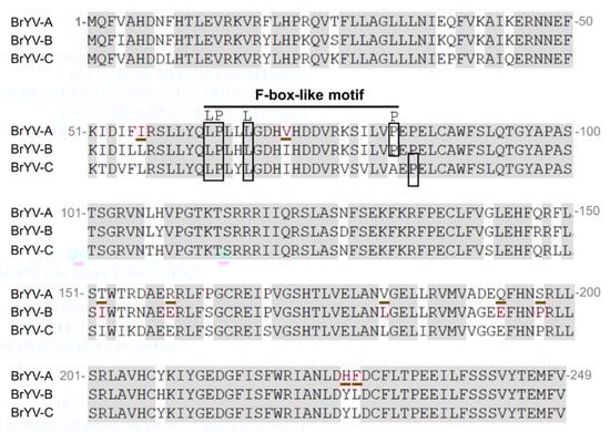 APA StyleZhang, X.-Y., Li, Y.-Y., Wang, Y., Li, D.-W., Yu, J.-L., & Han, C.-G. (2021). Comparative Analysis of Biological Characteristics among P0 Proteins from Different Brassica Yellows Virus Genotypes. Biology, 10(11), 1076. https://doi.org/10.3390/biology10111076