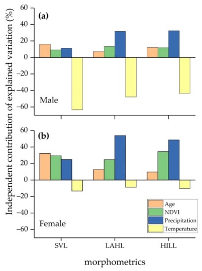 - Feng, X.Y.; Chen, W.; Hu, J.H.; Jiang, J.P. Variation and sexual dimorphism of body size in the plateau brown frog along an altitudinal gradient. Asian Herpetol. Res. 2015, 6, 291–297. [Google Scholar] [CrossRef]