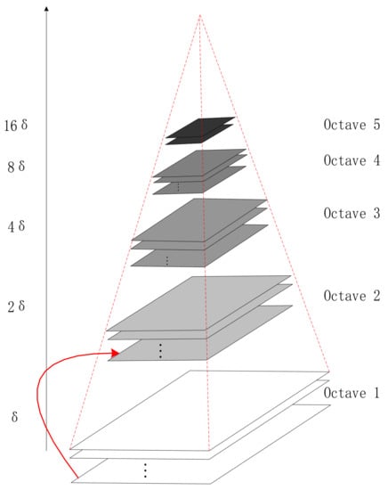 Finally, the Gaussian pyramid (GP) is obtained through a suite of scale-space transformations and second sub-sampling, as shown in Figure 3.