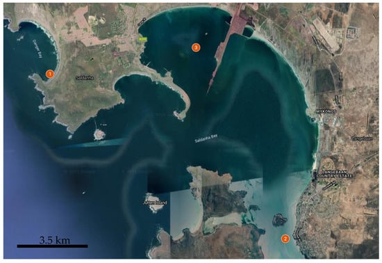 Collection sites in Saldanha Municipality area: St. 1—Danger Bay, St. 2—Langebaan Yacht club, St. 3—Small bay.