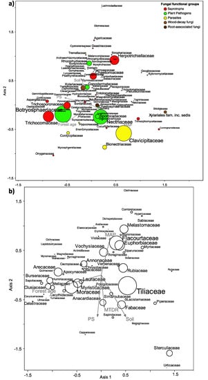 62. Peay, K.G.; Baraloto, C.; Fine, P.V. Strong coupling of plant and fungal community structure across western Amazonian rainforests. ISME J. 2013, 7, 1852–1861. [Google Scholar] [CrossRef] [PubMed]