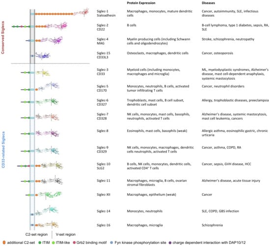 - Duan, S.; Paulson, J.C. Siglecs as immune cell checkpoints in disease. Annu. Rev. Immunol. 2020, 38, 365–395. [Google Scholar] [CrossRef] [PubMed]
