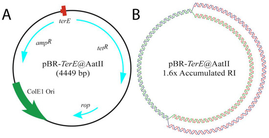 - Martin-Parras, L.; Lucas, I.; Martinez-Robles, M.L.; Hernandez, P.; Krimer, D.B.; Hyrien, O.; Schvartzman, J.B. Topological complexity of different populations of pBR322 as visualized by two-dimensional agarose gel electrophoresis. Nucleic Acids Res. 1998, 26, 3424–3432. [Google Scholar] [CrossRef] [PubMed][Green Version]