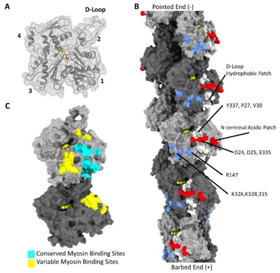 - Dominguez, R.; Holmes, K.C. Actin Structure and Function. Annu. Rev. Biophys. 2011, 40, 169–186. [Google Scholar] [CrossRef]