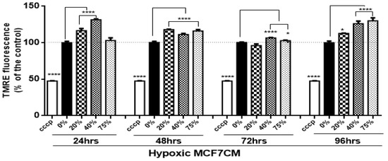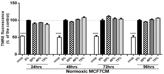 Figure 4), whereas bEnd.3 cells exposed to normoxic MCF7CM did not show a significant difference in TMRE fluorescent relative to the control (