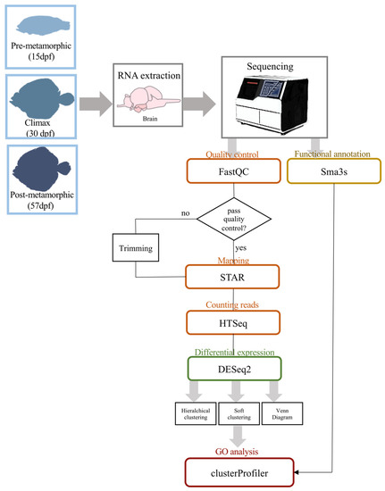 - Zoologie, R.C.; De Mazurais, D.; Darias, M.; Cahu, C.L. Transcriptomics for understanding marine fish larval development. Can. J. Zool. 2011, 89, 599–611. [Google Scholar]
