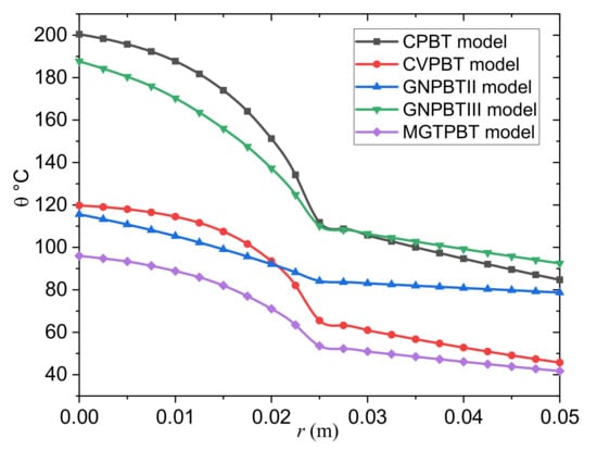 - The profiles of the temperature differences between the MGTPBT and CVPBT models were compared. It is clear from the figure that the behavior and convergence of the results of both models are quite similar, with only slight differences in magnitude.
