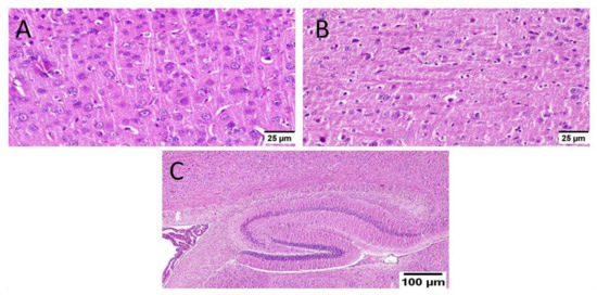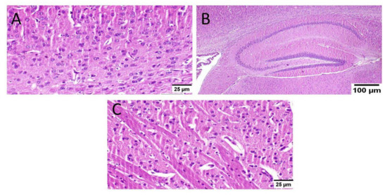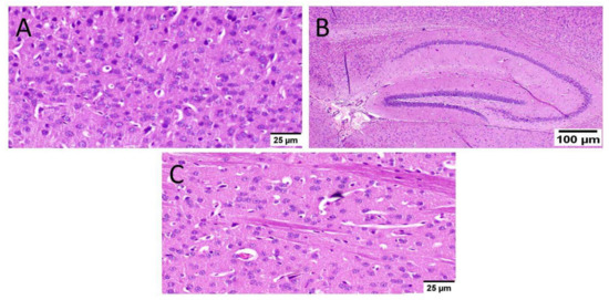 As well, mice that received MX-IV (group II) revealed normal histology in all anatomical sites of the brain tissue including the cerebral cortex, the hippocampus, and the striatum (Figure 7).
