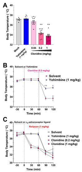 3.4. Role of α2-Adrenoceptor Signaling in Body Temperature Regulation