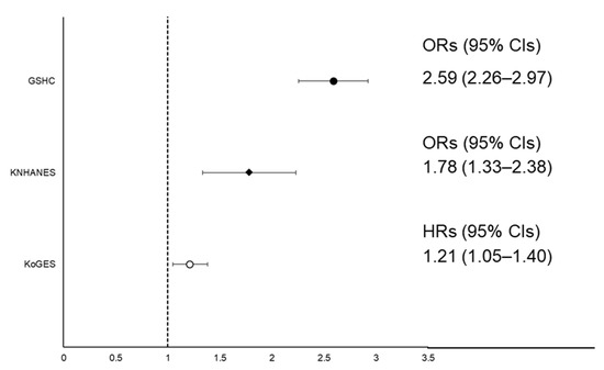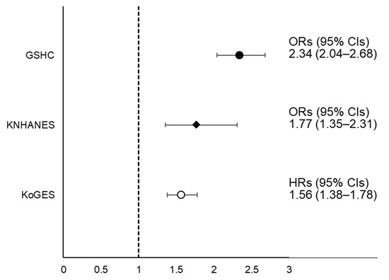 Statistical analyses were conducted using SAS statistical software (version 9.4; SAS Institute Inc., Cary, NC, USA) in the KoGES and SPSS statistical software (version 23.0; SPSS Inc., Chicago, IL, USA) in the GSHC and the KNHANES. The significance level was set at p < 0.05.