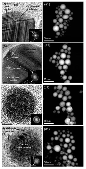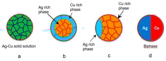 - Ceylan, A.; Jastrzembski, K.; Shah, S.I. Enhanced solubility Ag-Cu nanoparticles and their thermal transport properties. Metall. Mater. Trans. A 2006, 37, 2033–2038. [Google Scholar] [CrossRef]