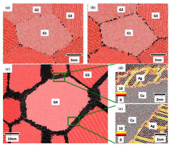 - Li, A.; Szlufarska, I. Morphology and mechanical properties of nanocrystalline Cu/Ag alloy. J. Mater. Sci. 2017, 52, 4555–4567. [Google Scholar] [CrossRef]