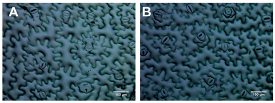 Microscopy images of the adaxial side of (A) AN1 and (B) WT leaves (20×).