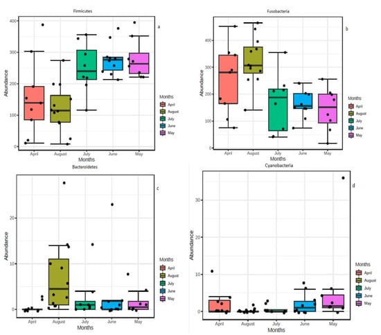 4.2. Seasonal Variation of Gut Microbial Communities