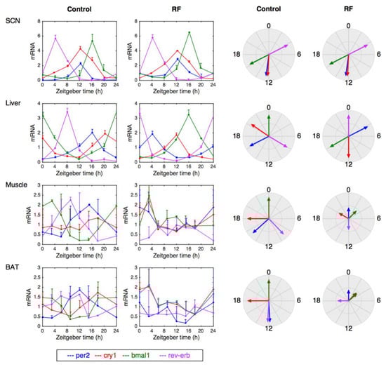 - Yamamoto, T.; Nakahata, Y.; Soma, H.; Akashi, M.; Mamine, T.; Takumi, T. Transcriptional oscillation of canonical clock genes in mouse peripheral tissues. BMC Mol. Biol. 2004, 5, 18. [Google Scholar] [CrossRef] [PubMed]