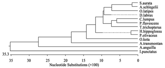 Comparison of cDNA sequences of somatolactin (SL) from blue gourami and various other fish species [44,45]. The phylogenetic tree showing the relationship between SL amino acid sequences compared to those of different teleosts is presented in Figure 23 [45].