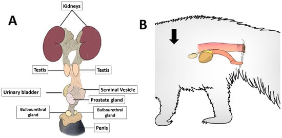 Even though the giant anteater is considered a “vulnerable” species, reported studies—regarding the anteater’s reproductive aspects, its association with conservation programs, and development of protocols emphasizing new reproductive biotechnologies for this species—are extremely scarce [4,5,6,7]. Although the number of sexual accessory glands varies for different mammals, the prostate gland is present in all mammal species, and it is considered one of the most important [8,9].