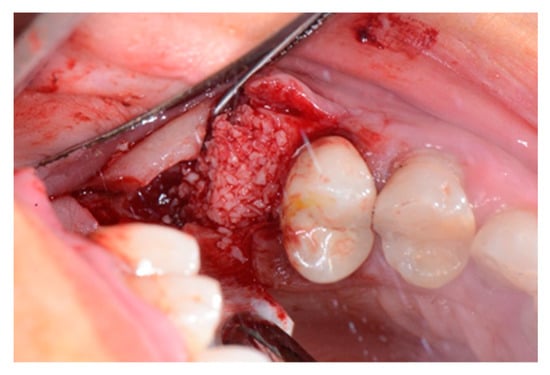 - Di Stefano, D. Treatment of a ridge atrophy and two peri-implant defects with equine bone and an equine pericardium membrane: Clinical and histological outcome. Stomatolog 2013, 19, 32–37. [Google Scholar]