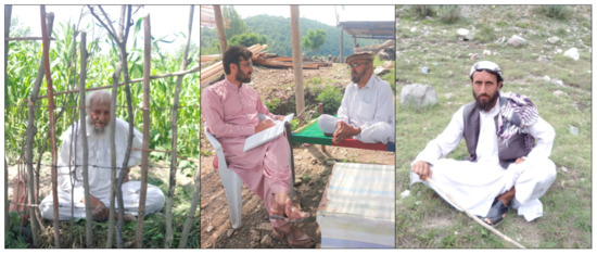 An ethnobotanical field study was carried out in July 2020 in the town of Kaniguram. The main purpose of the survey was to record local knowledge of WFP and mushroom uses within the two selected linguistic groups. From each of the studied groups, thirty informants were recruited through snowball techniques to participate in semi-structured interviews. Informants were selected among middle-aged and elderly inhabitants (range: 52 to 74 years old), including farmers and shepherds, which were considered the possible knowledge holders in the area (Figure 3).