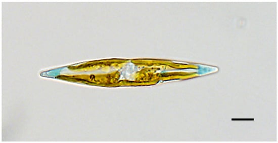 Live light microscopy (LM) image of Haslea silbo (valve view) clone K-1285. Scale bar 10 µm.