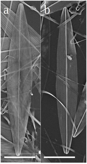 - Poulíčková, A.; Veselá, J.; Neustupa, J.; Škaloud, P. Pseudocryptic diversity versus cosmopolitanism in diatoms: A case study on Navicula cryptocephala Kütz. (Bacillariophyceae) and morphologically similar taxa. Protist 2010, 161, 353–369. [Google Scholar] [CrossRef] [PubMed]