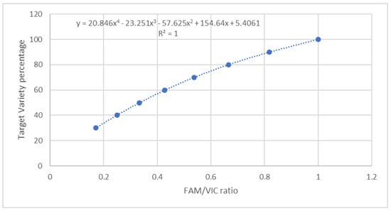 Theoretical correlation between TV percentage and FAM/VIC ratio.