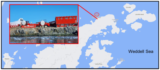 The Chilean year-round operating General Bernardo O’Higgins Riquelme Station located on the Trinity Peninsula, north-west Antarctic Peninsula (63°19′ S 57°54′ W).
