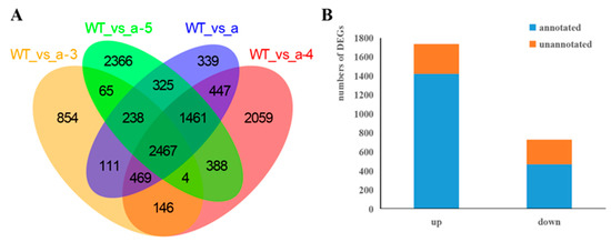 | WT vs. a-4 | 7441 | 2724 | 4717 |