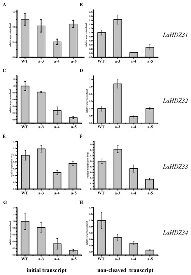 2.6. LaHDZ31–34 Expression Patterns Detected by Quantitative RT-PCR