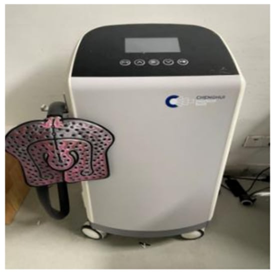 As shown in Figure 1 and Figure 2, Keiser (USA, 002521PP) was used in this study to measure PP and PF of the subjects’ leg extension ability. Meanwhile, participants were cryotherapy treated with a cryotherapy machine (Chenhui Medical, Suzhou, China). The cryotherapy treatment equipment used in this study was cooled by a compressor and R134A tetrafluoroethane and an antifreeze fluid in the bladder were in contact with the skin. The lowest temperature that can be controlled by the device is −5 °C and the maximum time of cryotherapy is 30 min. The device was refrigerated by a compressor, which made the antifreeze reach a constant −5 °C and the heat was exchanged with the skin through the bladder.